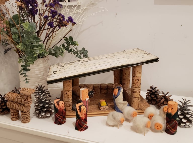 Then it was time for our Nativity scene, which was simple and not like the more elaborated ones with real moss and streams of water, but to me it felt like the most beautiful in the world because my parents had built it with corks and it with its sheeps made of toothpicks and cotton and its cork characters dressed in colorful fabric scraps filled my mind with imagination and wonder.